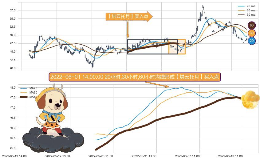 ⚀ 2022-05-23 15:00:00小时-2022-06-13 14:00:00小时显现 20小时-30小时-60小时均线 【烘云托月】买入点 看多信号,后市看涨,买入