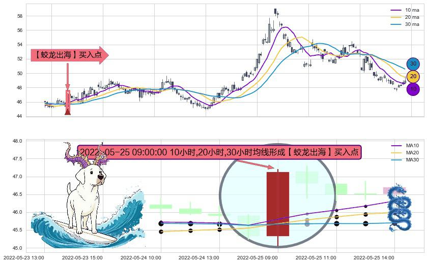 ⚀ 2022-05-25 09:00:00小时显现 10小时-20小时-30小时均线 【蛟龙出海】买入点 看多信号,后市看涨,买入
