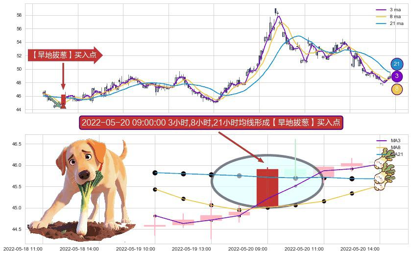 ⚀ 2022-05-20 09:00:00小时显现 3小时-8小时-21小时均线 【旱地拔葱】买入点 看多信号,后市看涨,买入