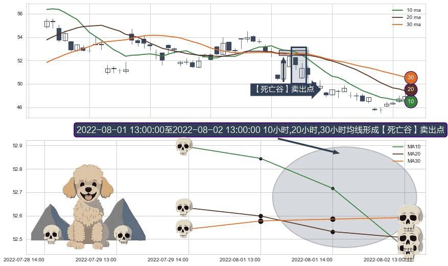 ⚀ 2022-08-01 14:00:00-小时至2022-08-02 13:00:00-小时显现 10小时-20小时-30小时均线 【死亡谷】卖出点 看空信号,后市看跌,卖出
