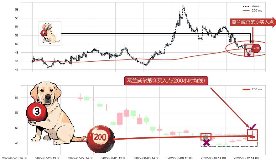 ⚀ 2022-08-12 14:00:00-小时显现 葛兰威尔均线 200小时均线 第③买入点 上升趋势的中继信号,后市看涨,买进信号