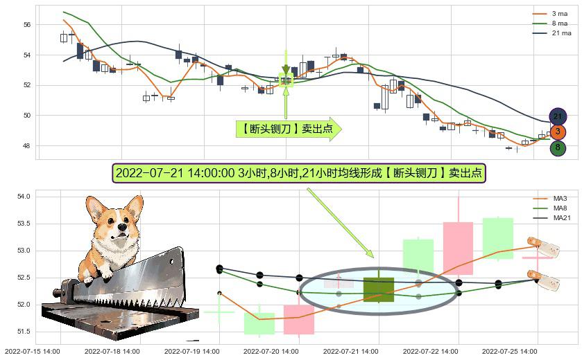 ⚀ 2022-07-21 14:00:00小时显现 3小时-8小时-21小时均线 【断头铡刀】卖出点 看空信号,后市看跌,卖出
