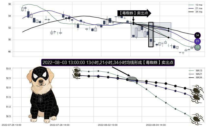 ⚀ 2022-08-03 13:00:00小时显现 13小时-21小时-34小时均线 【毒蜘蛛】卖出点 看空信号,后市看跌,卖出