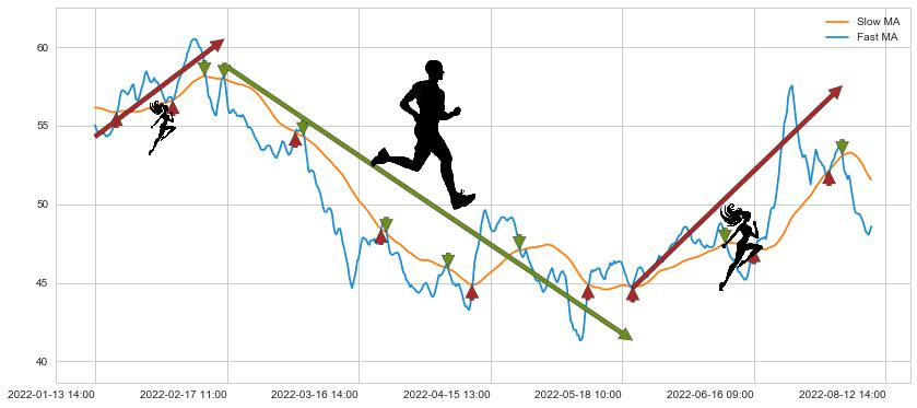 02-17 09:00至05-19 14:00 慢线与快线呈空头排列, 慢线与快线接触少,无缠绕