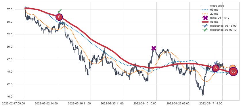 ⚂ 2022-07-21 14:00:00小时突然冒出一根大阴线,一下子下穿三条均线且收盘价收在各条均线之下