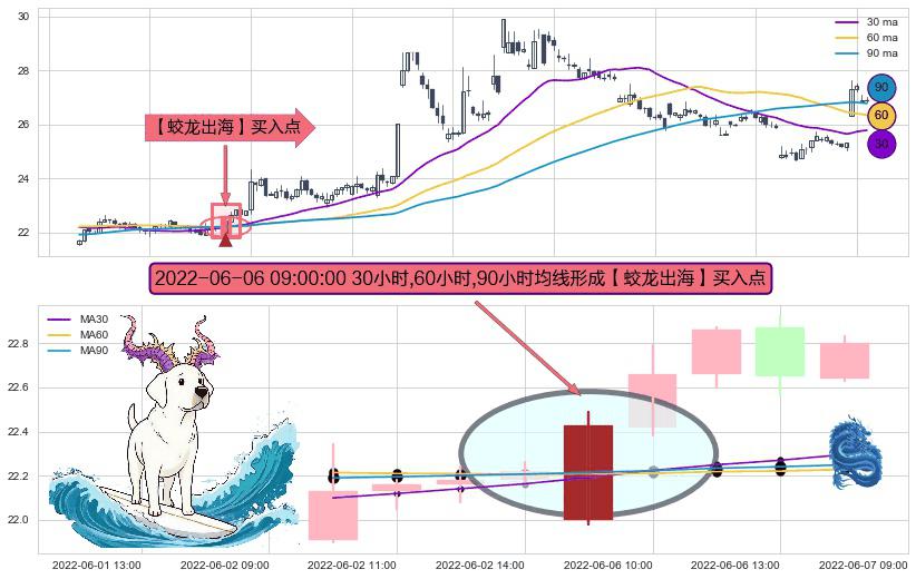 ⚀ 2022-06-06 09:00:00小时显现 30小时-60小时-90小时均线 【蛟龙出海】买入点 看多信号,后市看涨,买入