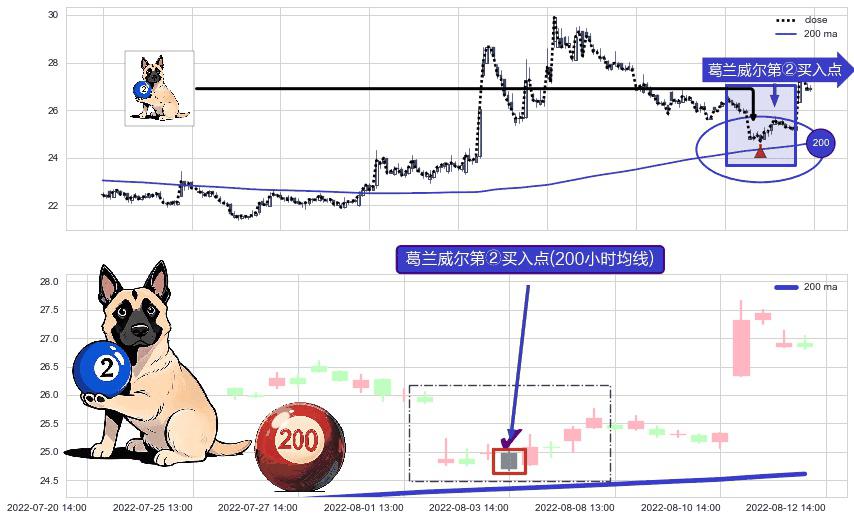 ⚀ 2022-08-03 14:00:00-小时显现 葛兰威尔均线 200小时均线 第②买入点 上升趋势的中继信号,后市看涨,买进信号