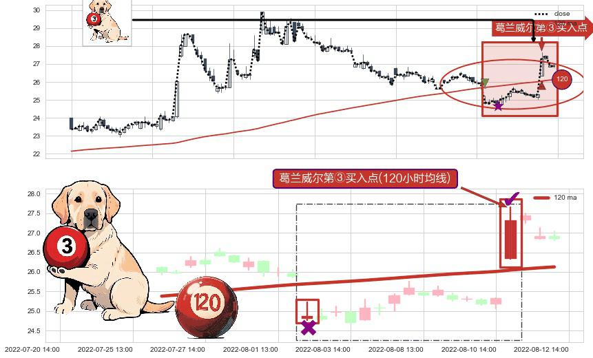 ⚀ 2022-08-11 13:00:00-小时显现 葛兰威尔均线 120小时均线 第③买入点 上升趋势的中继信号,后市看涨,买进信号