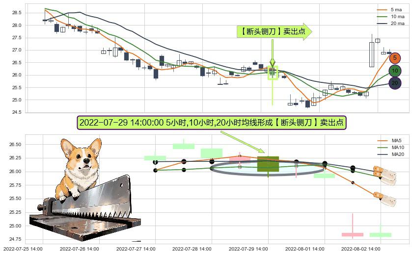 ⚀ 2022-07-29 14:00:00小时显现 5小时-10小时-20小时均线 【断头铡刀】卖出点 看空信号,后市看跌,卖出