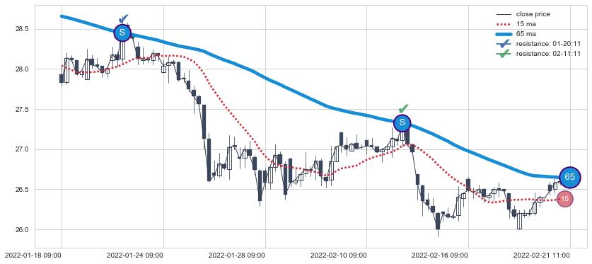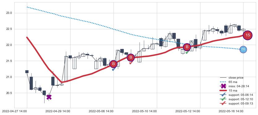 ⚂ 2022-08-02 13:00:00-小时均线向下破位,2022-08-11 13:00:00-小时重新上穿突破均线,均线支撑再次生效