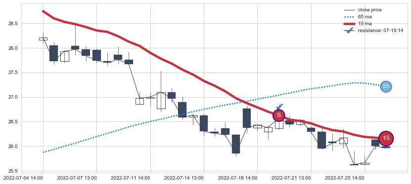 ⚂ 2022-07-29 14:00:00小时突然冒出一根大阴线,一下子下穿三条均线且收盘价收在各条均线之下
