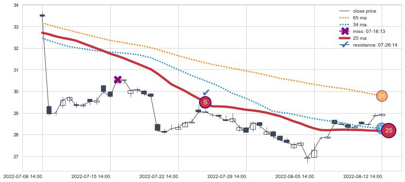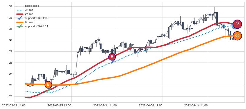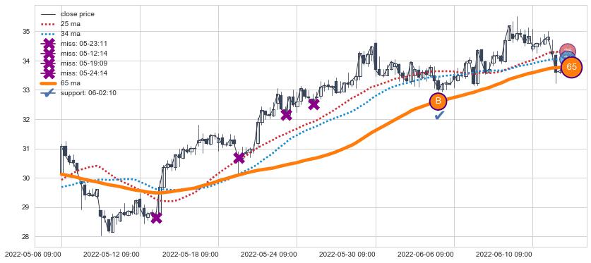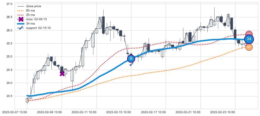 ⚃ 在破位点附近ma走势已有下垂迹象,稍后的走势中ma下降趋势明显,信号【可信度高】