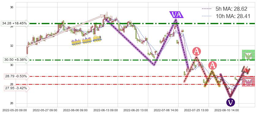 ♘ 阻力价格位30.50,可信任强度68.72%,距离最后交易2022-08-12 14:00形成的收盘价格28.94相差 +5.38%