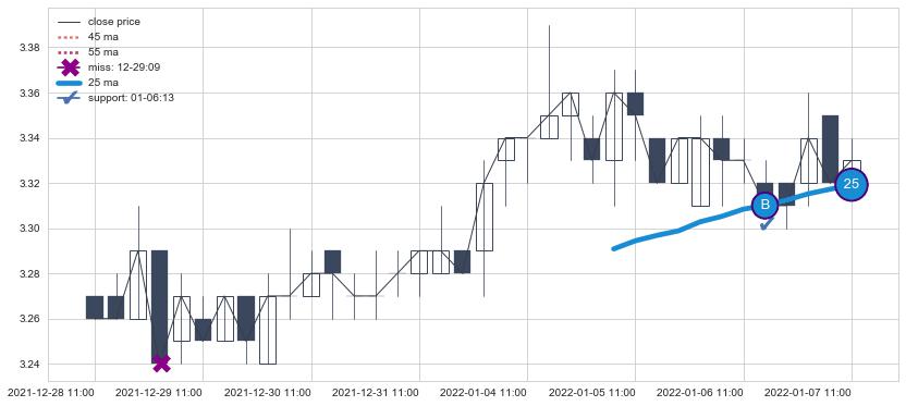 上涨趋势12-28 11:00-01-07 11:00,均线25确认关键支撑1处
