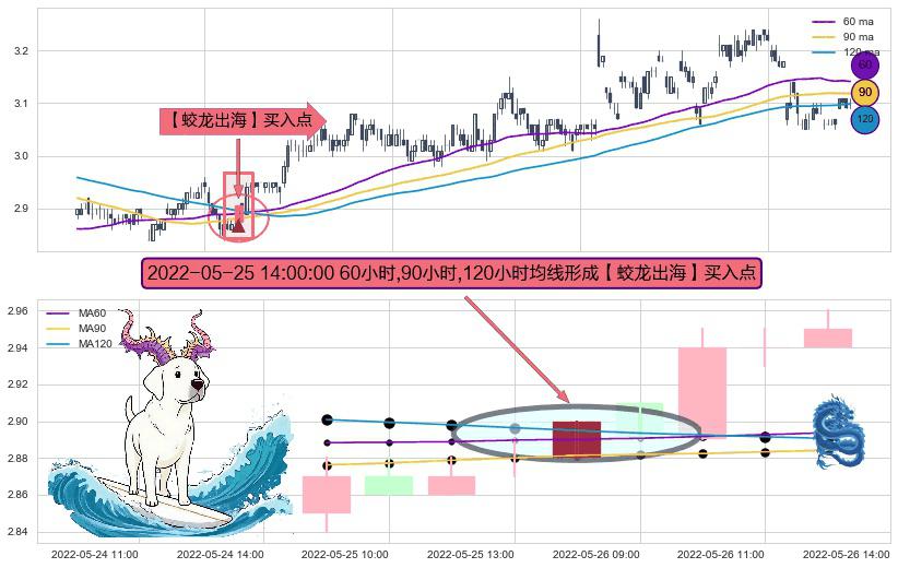 ⚀ 2022-05-25 14:00:00小时显现 60小时-90小时-120小时均线 【蛟龙出海】买入点 看多信号,后市看涨,买入