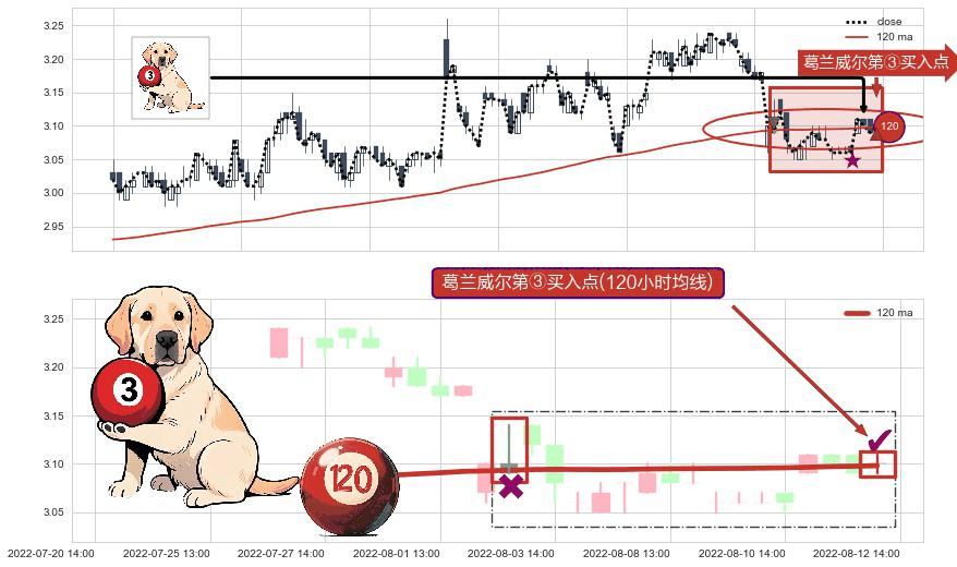 ⚀ 2022-08-12 14:00:00-小时显现 葛兰威尔均线 120小时均线 第③买入点 上升趋势的中继信号,后市看涨,买进信号