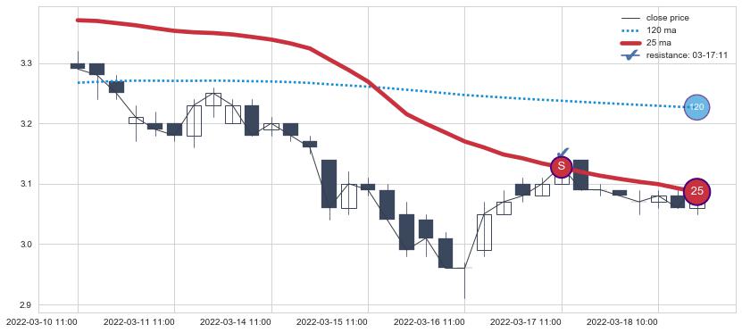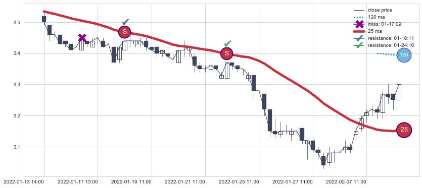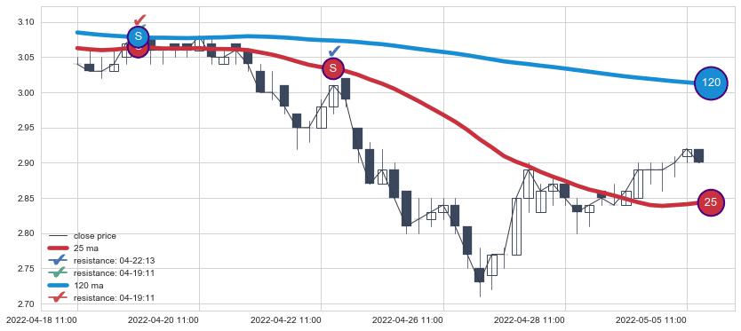 ⚂ 2022-05-25 14:00:00小时突然冒出一根大阳线,一下子顶穿三条均线且收盘价收在各条均线之上