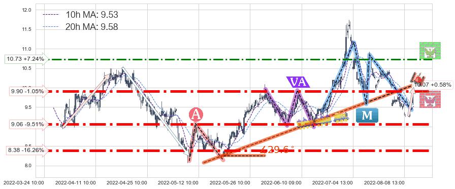 ♞ 10小时均线:9.53,20小时均线:9.58→ 快线<慢线