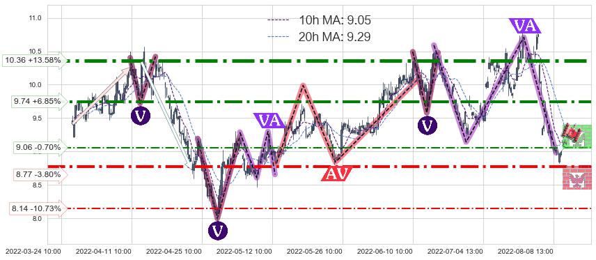♞ 10小时均线:9.05,20小时均线:9.29→ 快线<慢线