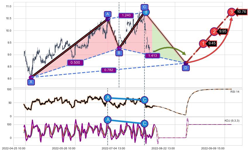 ➢ 谐波价格A点比C点低 ⤵,【KDJ】指标A点比C点高 ⤴️