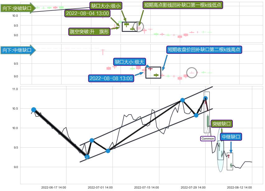 ➢ 2022-08-08 13:00形成:向下跳空【中继】缺口