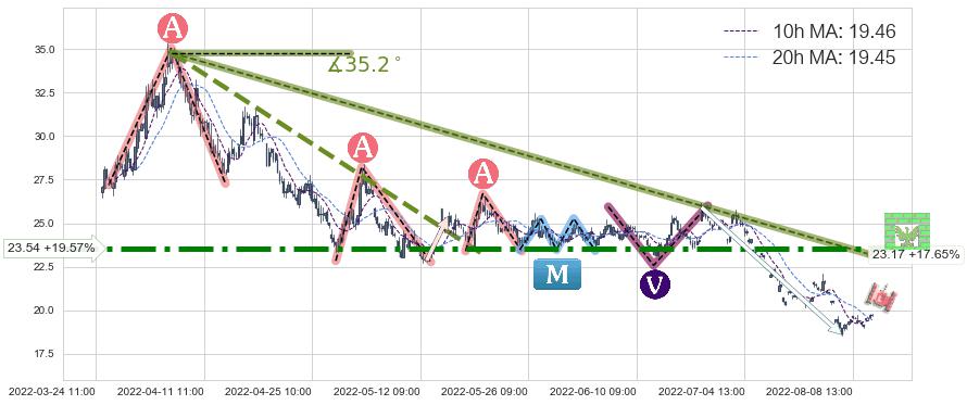 ♘ 阻力价格位23.54,可信任强度90.23%,距离最后交易2022-08-12 14:00形成的收盘价格19.69相差 +19.57%