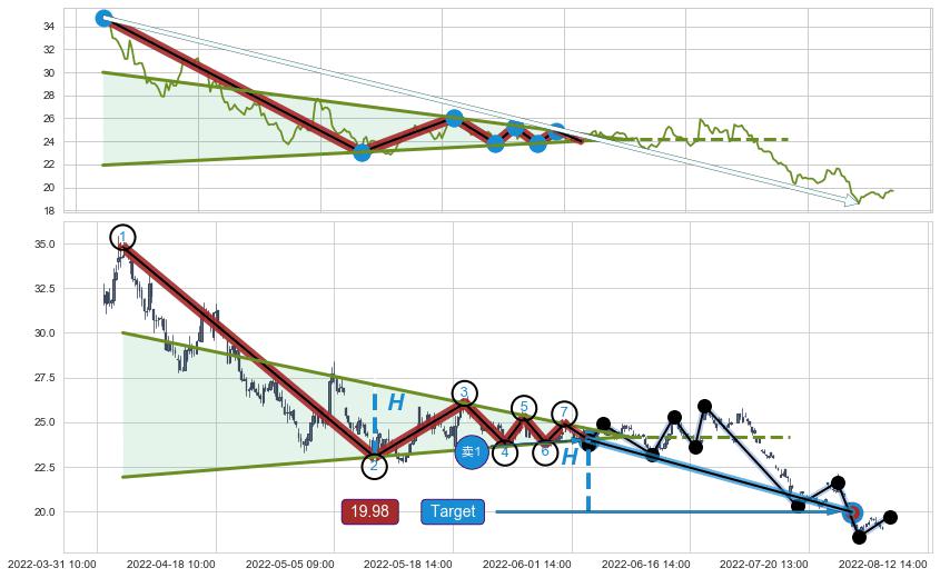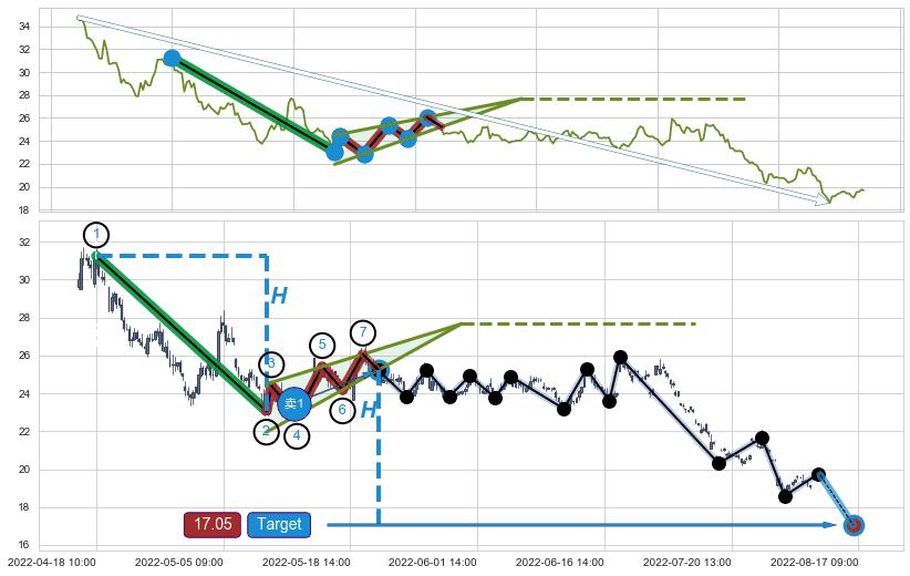 ➢ 最小中继整理跌幅→𝐇: 8.17 (𝐇楔型旗杆的长度:楔型起点→顶点)