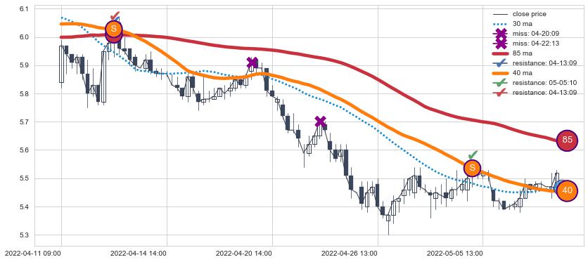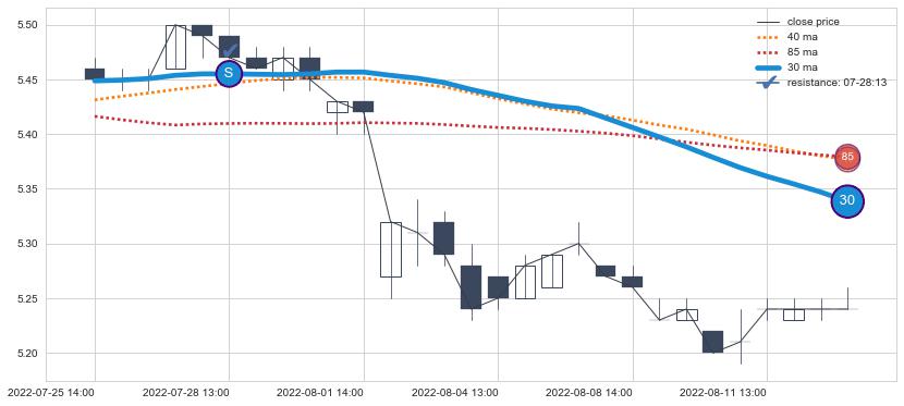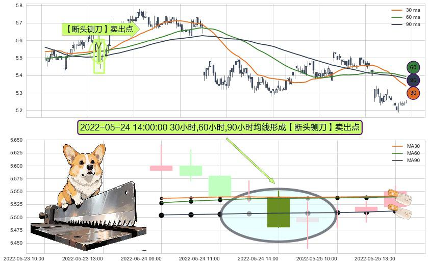⚀ 2022-05-24 14:00:00小时显现 30小时-60小时-90小时均线 【断头铡刀】卖出点 看空信号,后市看跌,卖出