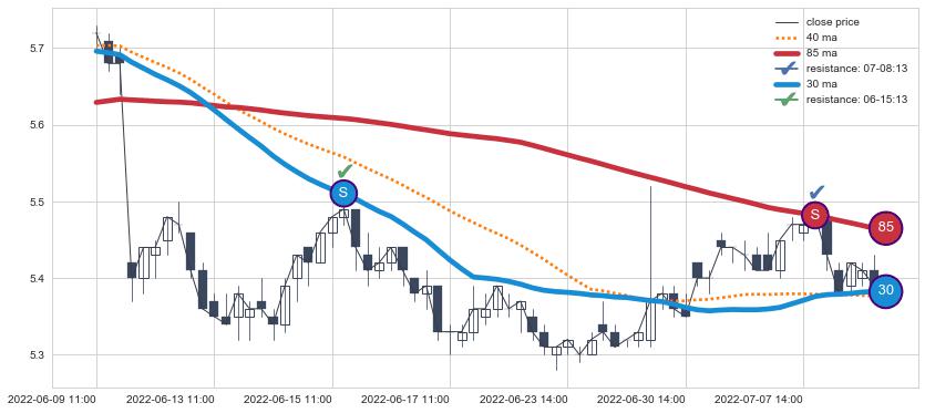 ⚀ 2022-06-06 14:00:00小时-2022-07-01 14:00:00小时显现 30小时-60小时-90小时均线 【高山滑雪】买入点 看多信号,后市看涨,买入