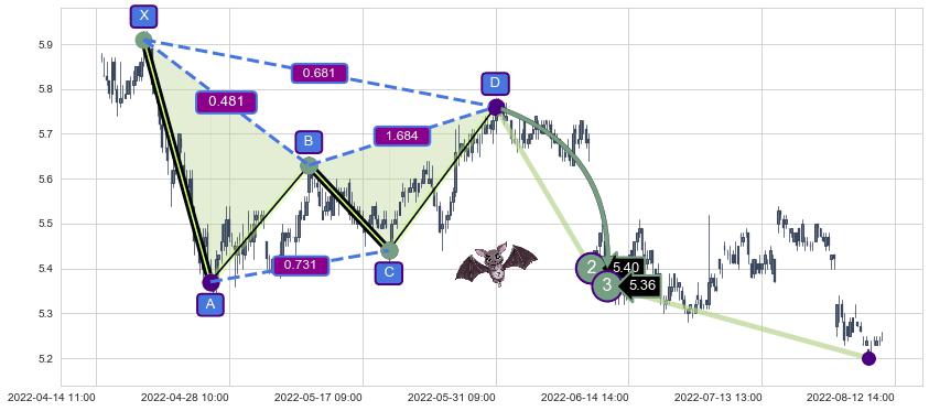 ➣ 已达成看跌【蝙蝠】形态全部的预期目标