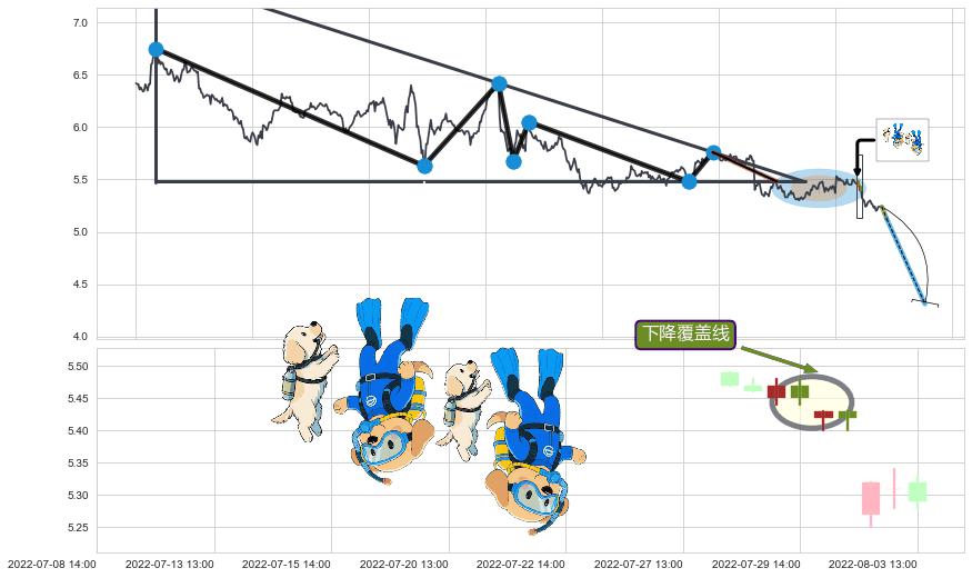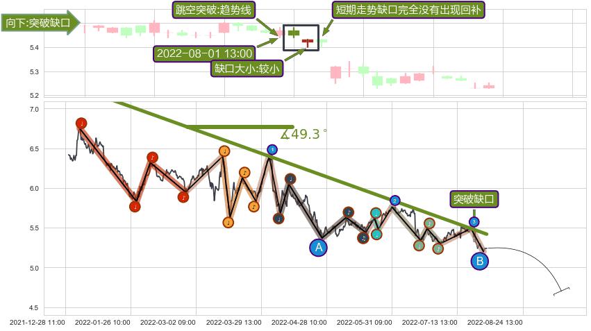 ➢ 2022-08-01 13:00形成:向下跳空【突破】缺口