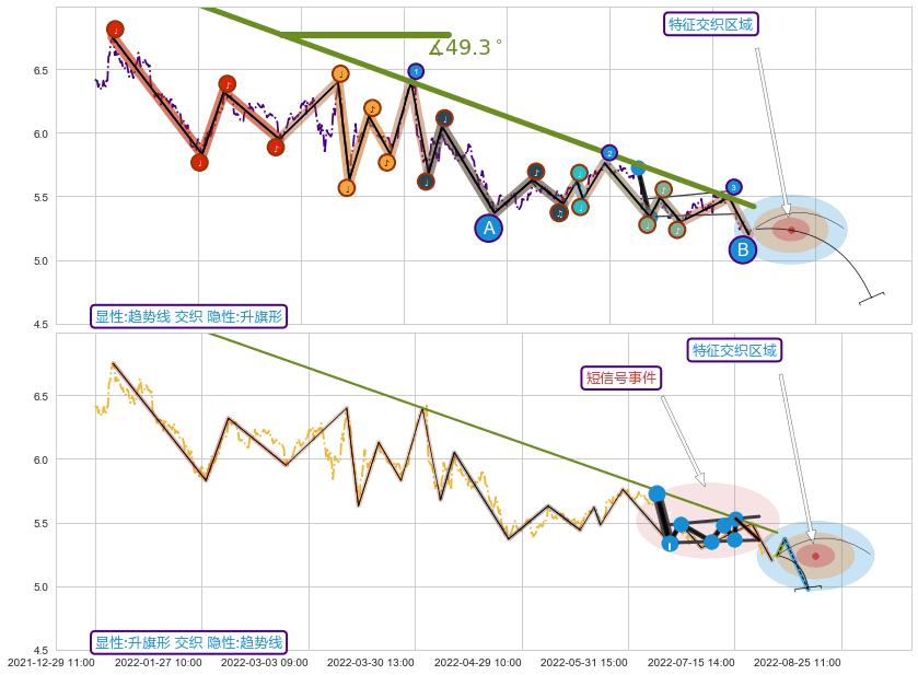 从2022-01-04 14:00至2022-08-12 14:00,共包含624个小时,阶段股价下跌-23.55%,阶段股价变动位移路程比: 1 : 13,下跌趋势角度: 49.3