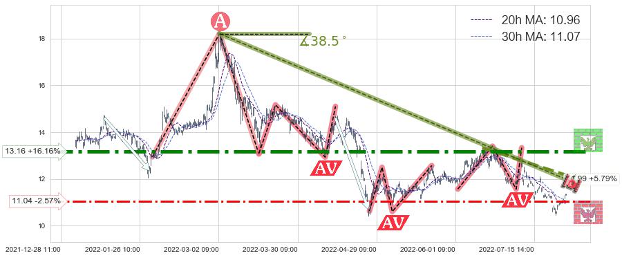 ♘ 阻力价格位13.16,可信任强度94.34%,距离最后交易2022-08-12 14:00形成的收盘价格11.33相差 +16.16%