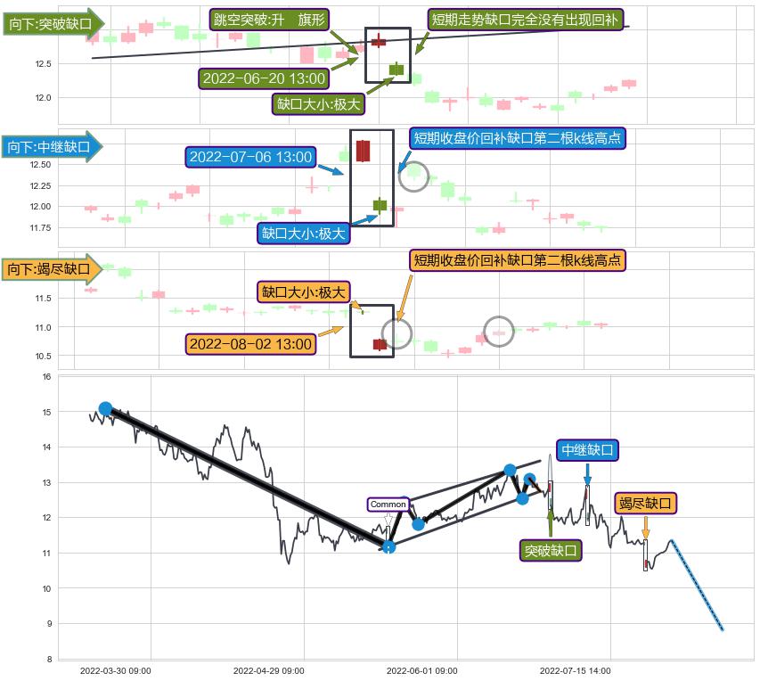 ➢ 2022-08-02 13:00形成:向下跳空【竭尽】缺口