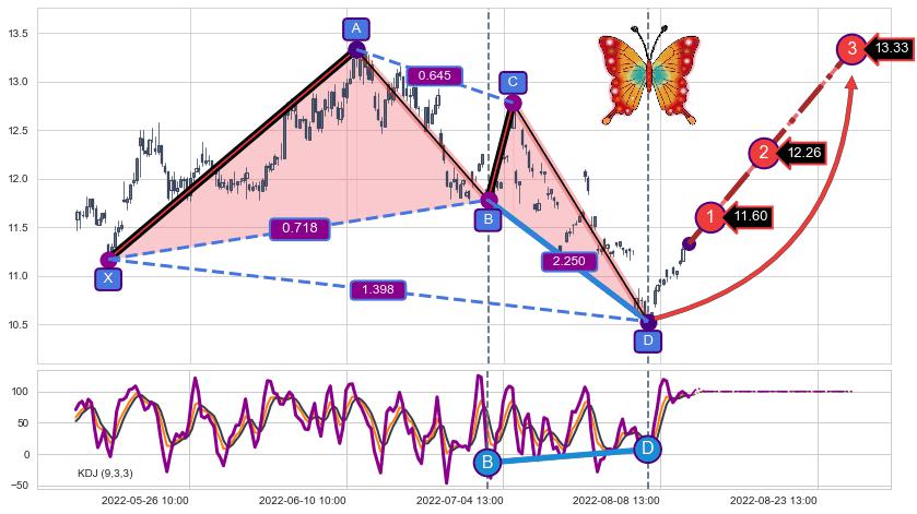 ➣ 已完成【蝴蝶】形态起点X: 05-19:09, 终点D: 08-04:13, 共173交易小时