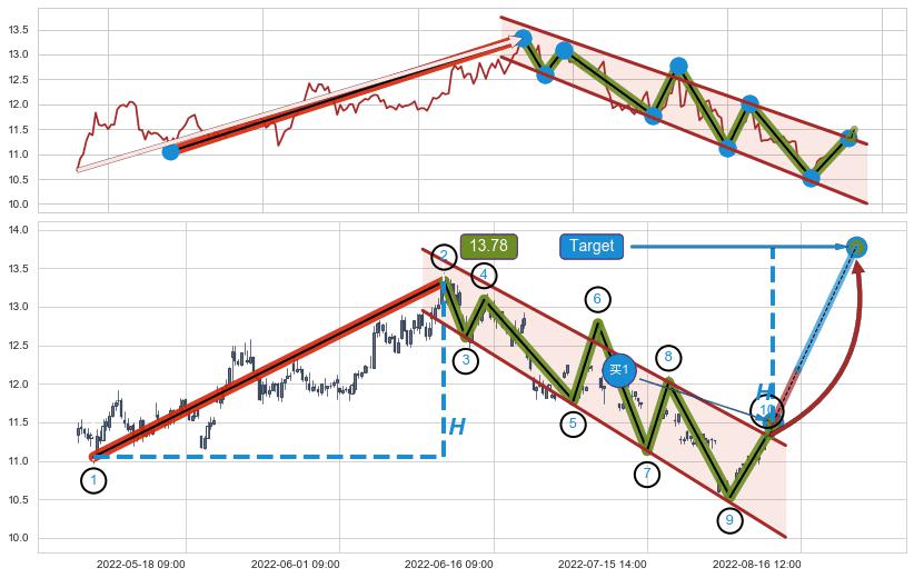 ➣ 最小中继整理涨幅→𝐇: 2.280 (𝐇旗杆的长度:旗杆起点→顶点)
