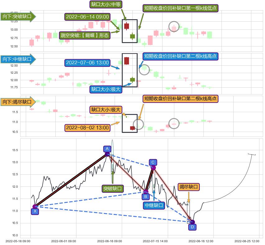 ➢ 2022-08-02 13:00形成:向下跳空【竭尽】缺口