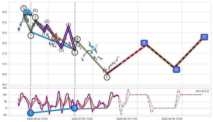 | 3 🅚:上涨两颗星 | 上涨三颗星 ➕ 🌊:波浪理论猜想下跌浪5已形成,猜想后续形成abc反弹上涨(均值回复) ☞ 看多信号 ⇥ 【🅚线】交织【图形】⇥ 综合量化分数: 51 | > |