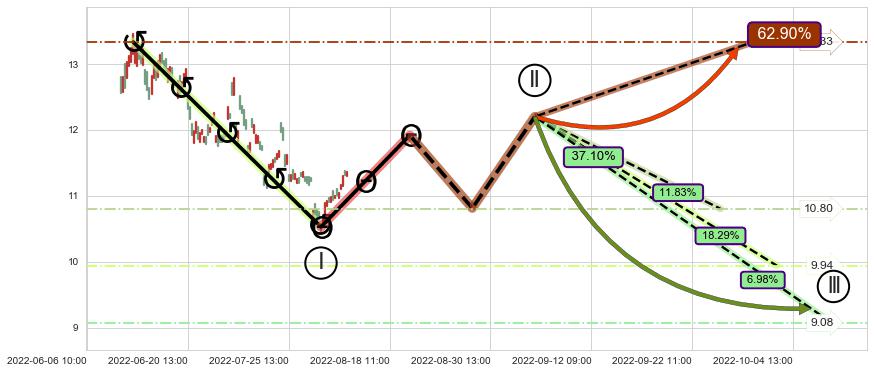 ➢ 循环浪继续向下【最高】位置(09-26:13, 10.80),匹配聚类样本比例31.89%, 可能性概率11.83%