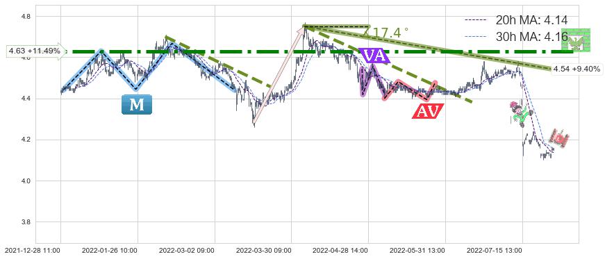 ♞ 20小时均线:4.14,30小时均线:4.16→ 快线<慢线