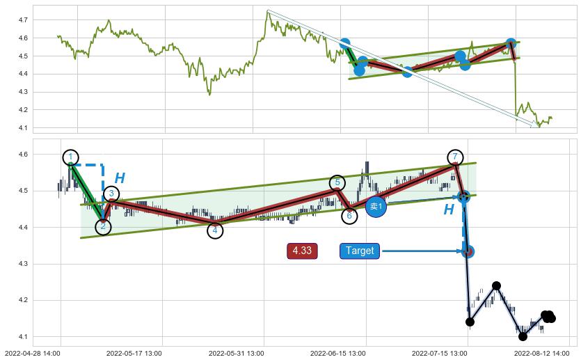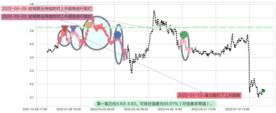 ♘ 阻力价格位4.63,可信任强度93.61%,距离最后交易2022-08-12 14:00形成的收盘价格4.15相差 +11.49%