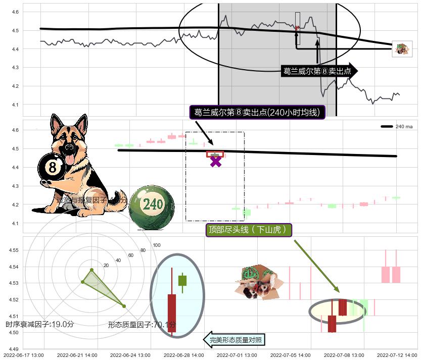 | 3 🅚:看跌(高位倒锤头)流星线 ➕ 🎢:葛兰威尔第⑧卖出点卖出点信号形成后,猜想后续持续下行(趋势跟踪) ☞ 看空信号 ⇥ 【均线】交织【🅚线】⇥ 综合量化分数: 42 | > |