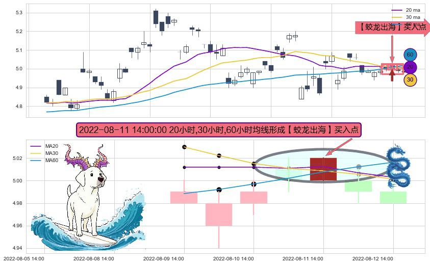 ⚀ 2022-08-11 14:00:00小时显现 20小时-30小时-60小时均线 【蛟龙出海】买入点 看多信号,后市看涨,买入