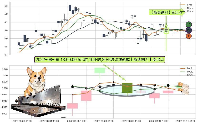 ⚀ 2022-08-09 13:00:00小时显现 5小时-10小时-20小时均线 【断头铡刀】卖出点 看空信号,后市看跌,卖出