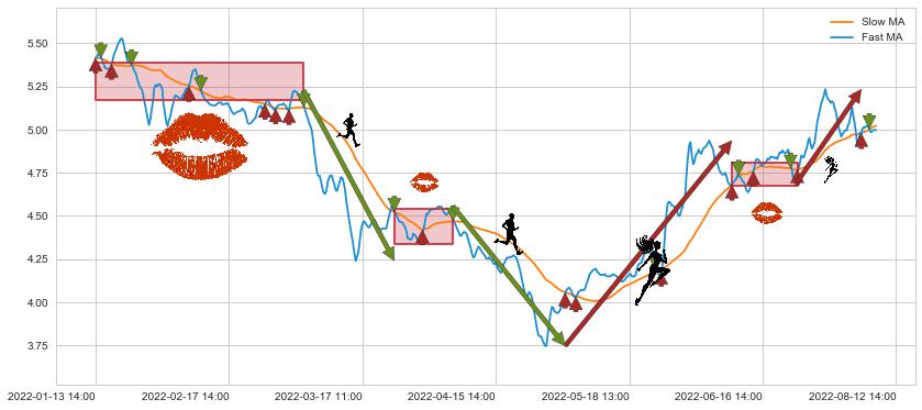 01-13 14:00至03-04 14:00 慢线与快线多次接触,存在上下穿越,有缠绕