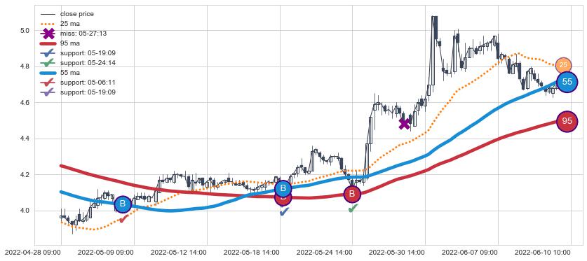 ⚃ 在突破点附近ma走势明显平稳迹象,稍后的走势中ma上翘迹象也出现,信号【可信度中等偏上】