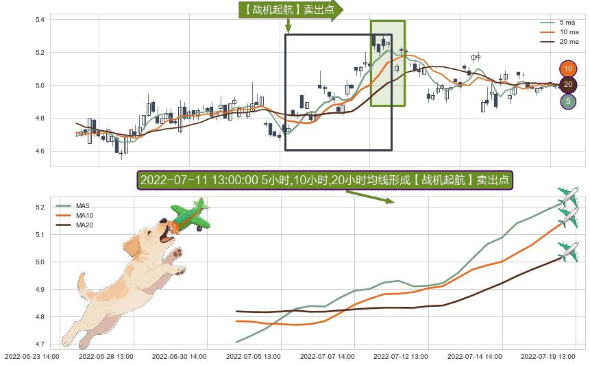 ⚀ 2022-07-01 14:00:00小时-2022-07-18 14:00:00小时显现 5小时-10小时-20小时均线 【战机起航】卖出点 看空信号,后市看跌,卖出