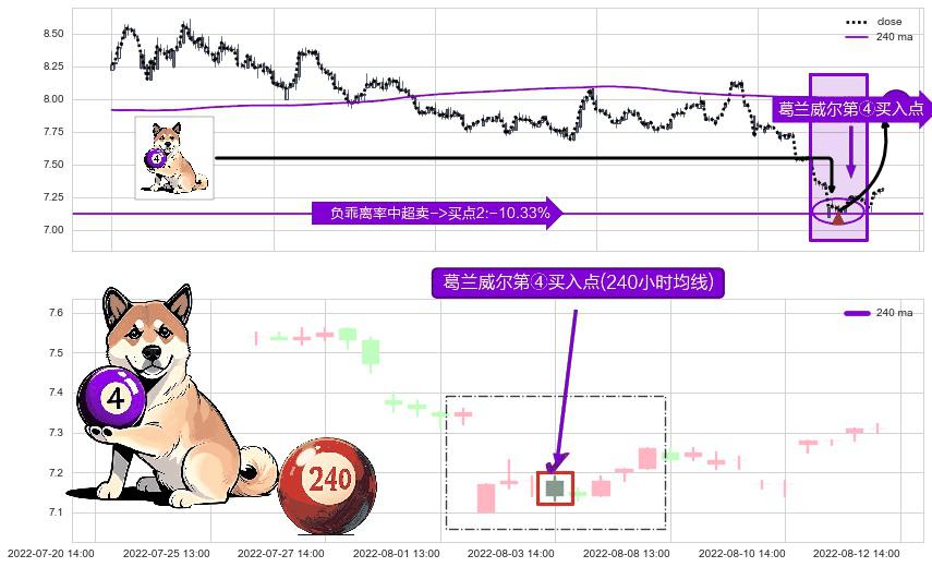 ⚀ 2022-08-03 14:00:00-小时显现 葛兰威尔均线 240小时均线 第④买入点 下降趋势均值回复的短线反弹信号,后市看涨,买进信号