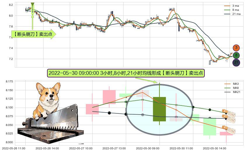 ⚀ 2022-05-30 09:00:00小时显现 3小时-8小时-21小时均线 【断头铡刀】卖出点 看空信号,后市看跌,卖出