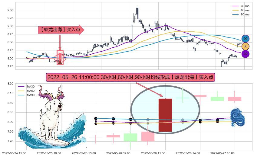 ⚀ 2022-05-26 11:00:00小时显现 30小时-60小时-90小时均线 【蛟龙出海】买入点 看多信号,后市看涨,买入
